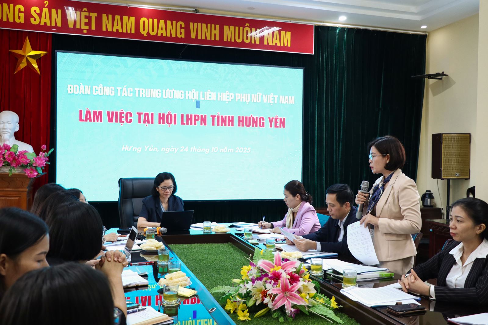 Các đồng chí Ủy viên Ban Thường vụ Hội LHPN tỉnh báo cáo công tác Hội, các hoạt động của Phụ nữ tỉnh Hưng Yên