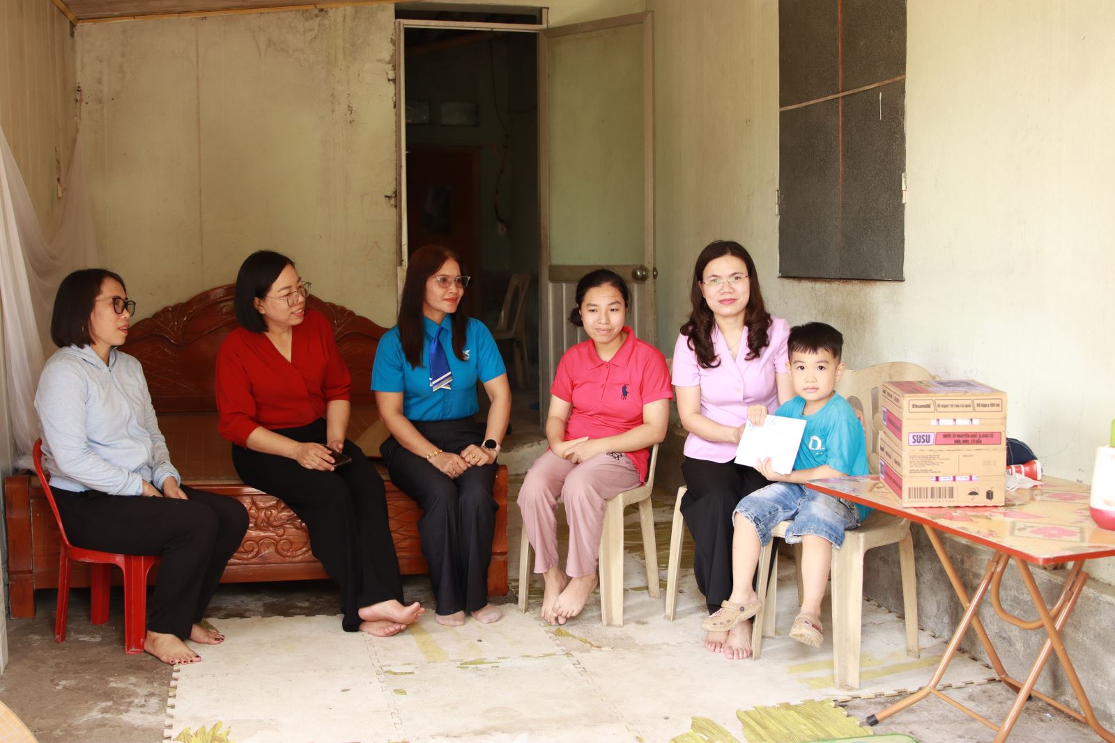 Đoàn công tác đã tới thămvà tặng 03 suất quà, mỗi suất gồm 02 triệu đồng và 02 thùng sữa củaCông ty Cổ phần Sữa Việt Nam Vinamilk cho 03 gia đình hội viên phụ nữ và trẻ em bị ảnh hưởng nặng nề do Bão số 10 gây ra. Tại mỗi gia đình tới thăm, đồng chí Chủ tịch Hội LHPN tỉnh đã ân cần thăm hỏi và động viên gia đình khắc phục khó khăn, sớm ổn định cuộc sống.